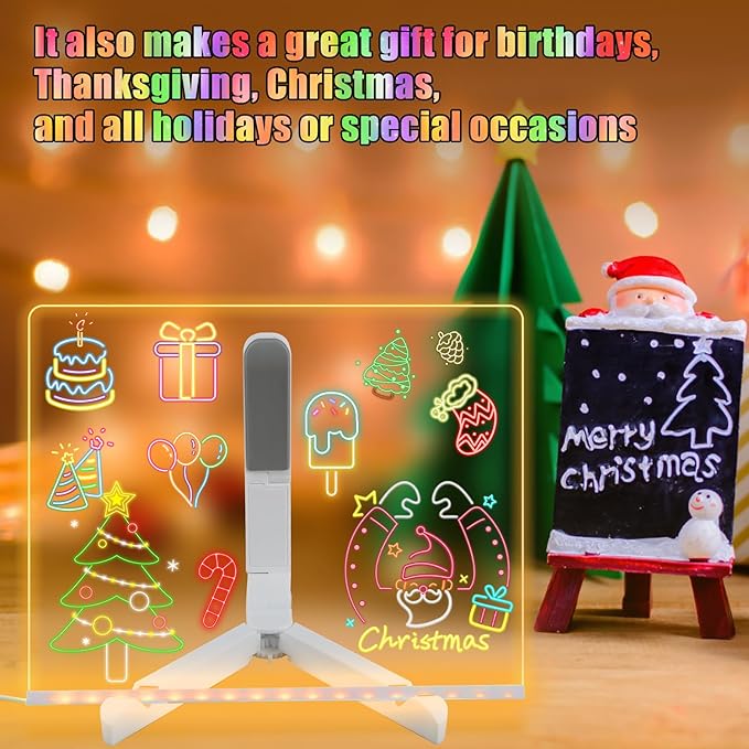 No longer rely on easy to fall off or lost post-it notes, LED light up board can facilitate your life and work, equipped with adjustable Angle tripod, will immediately capture your thoughts and record, size enough LED board, so that they are always visible and available. Whether you’re imagining the sky, sketching or mind mapping, this board is the perfect tool to unleash your creativity.